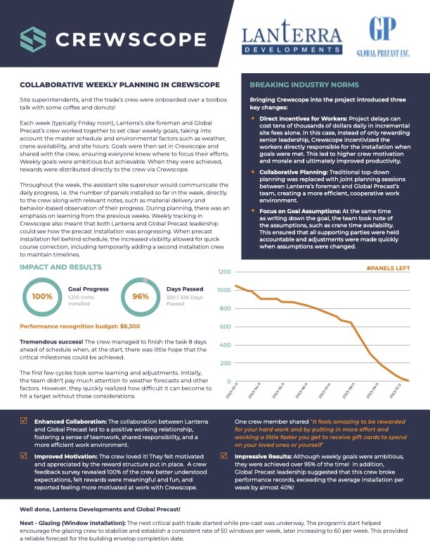 We’re thrilled to pioneer a fresh approach to high-rise construction. Lanterra uses Crewscope to improve collaboration with third-party contractors.
